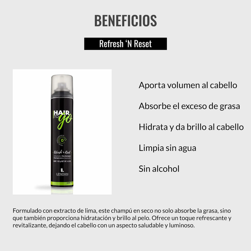 - DRY SHAMPOO: Refresh'n Reset is a dry shampoo that uses tapioca powder to effectively absorb excess oil, pollutants, and accumulated residues in the hair. It leaves the hair clean, voluminous, and easily brushed out.