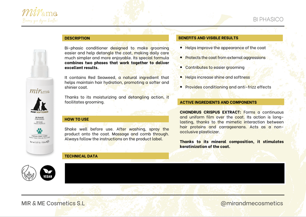 Make grooming easier and more enjoyable with the MIR&ME Paw Softener Bi‑Phase Conditioner, a lightweight leave‑in spray designed to detangle, soften, and hydrate your dog’s coat. Its innovative two‑phase formula works instantly to ease brushing and reduce knots, making it ideal for dogs with long, dense, or easily tangled fur.