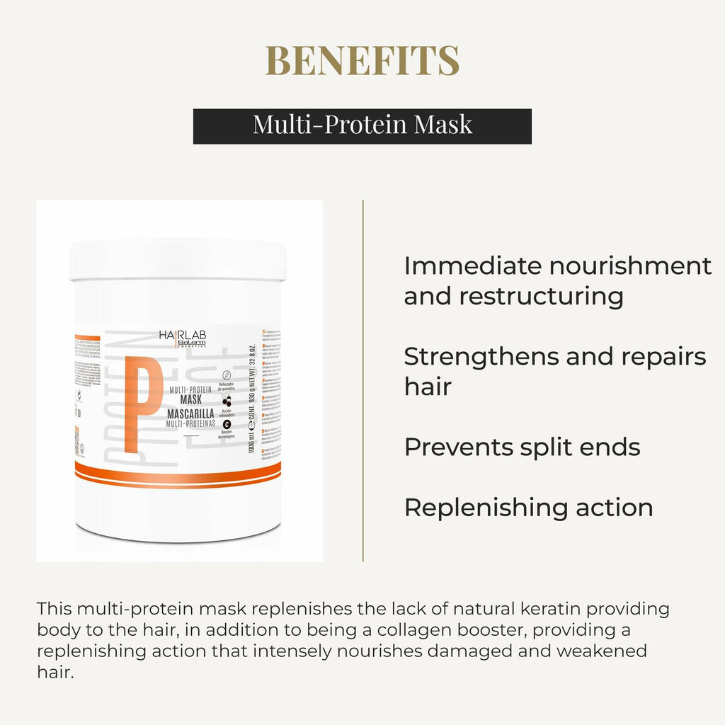 - DAMAGED HAIR MASK: The Multi-Protein Mask is formulated with low molecular weight hydrolyzed keratin and cystines to help strengthen the hair. It also helps improve the overall structure of the hair, filling and fortifying from roots to ends, providing body to the hair.
