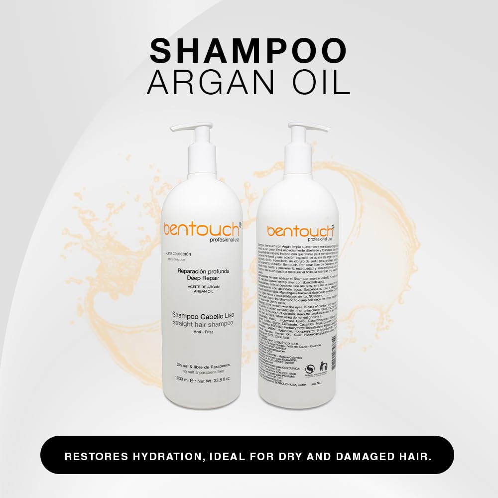 - Bentouch Argan Oil Shampoo - Deep Care for Treated Hair: Immerse yourself in the luxury of Bentouch Argan Oil Shampoo, designed to gently cleanse while protecting and enhancing the smoothness of treated or colored hair. Formulated with panthenol and a special touch of argan oil, this sulfate-free shampoo restores the shine, softness, and elasticity of your hair. Keep your hair strong and resilient with its paraben-free formula that prevents dryness and damage.