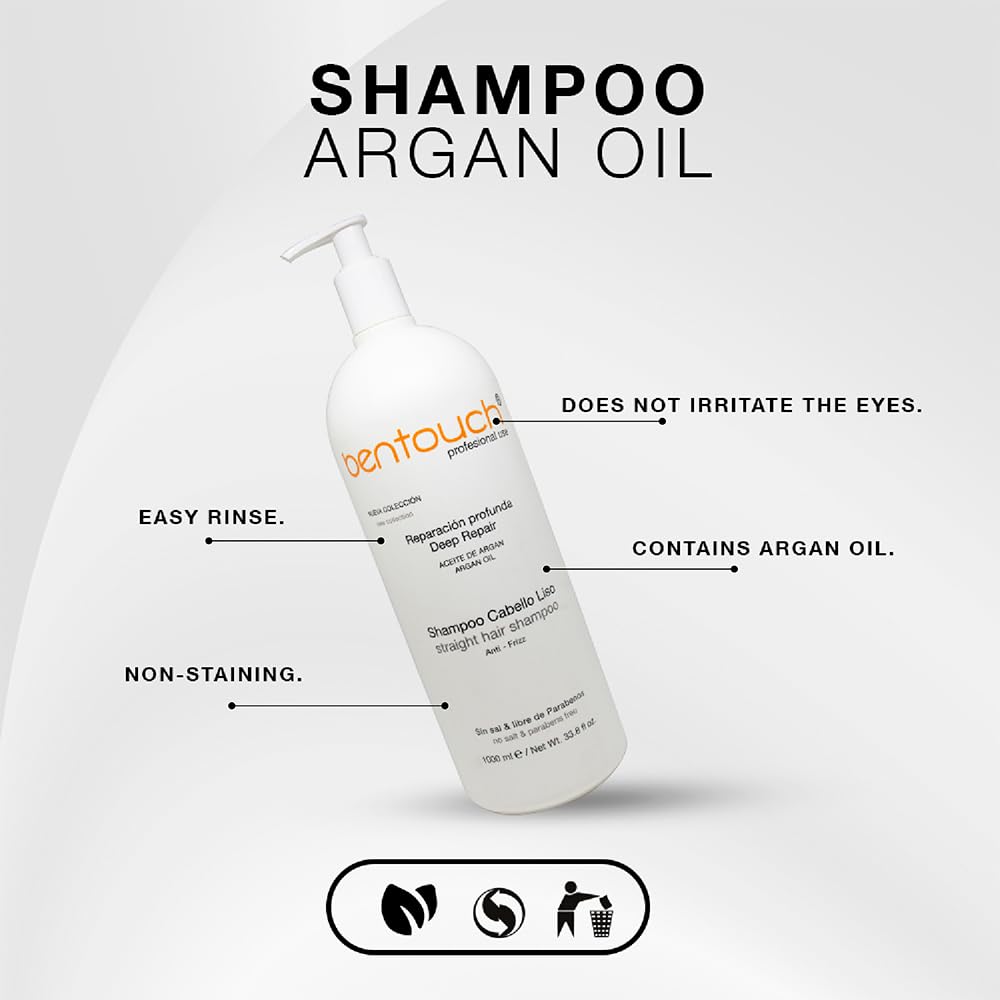 - Premium Features - Bentouch Shampoo for Straight and Dyed Hair: Discover excellence in hair care with Bentouch Argan Oil Shampoo. With its easy rinse-off, excellent finish, low toxicity, and slightly acidic pH, this shampoo removes impurities and dirt, catering to straight and dyed hair. It moisturizes just enough for a healthy appearance, ending dryness, and providing a delightful fragrance without staining or irritating the eyes.
