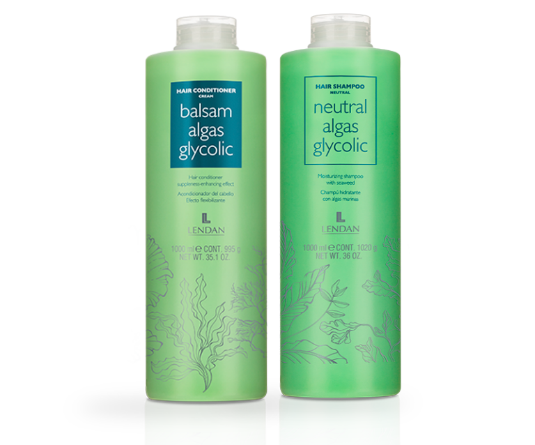 Includes Lendan Algas Glycolic Shampoo and Instant Balsam Conditioner, designed to hydrate, repair, and rebalance hair after chemical or technical treatments.