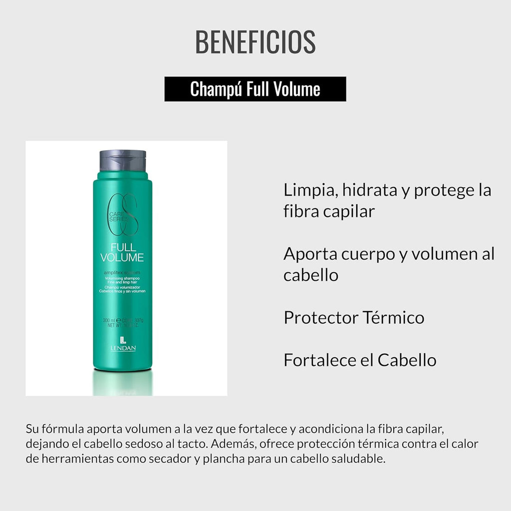 Lendan’s Full Volume Shampoo is the perfect solution for fine hair, offering a deep cleanse that not only adds body and volume from the roots but also enhances the hair’s density. Its formula is designed to strengthen and condition the hair fiber, leaving the hair silky to the touch while providing thermal protection against heat from tools like blow dryers or straighteners, ensuring healthier hair. Thanks to the innovative Amplitex System technology, this shampoo revitalizes the hair fiber, leaving hair loose, shiny, and, most importantly, with more body and volume. This formula helps regenerate the cuticle for healthier and fuller-looking hair. To maximize its benefits, it is recommended to apply the shampoo to wet hair, gently massage the scalp for a few seconds, and then rinse with warm water to achieve hair with more volume and body from the roots. At Lendan Cosmetics, we have over 50 years of experience in the hair and beauty products sector. We prioritize research and the development of innovative formulas to offer the best results in hair care products.