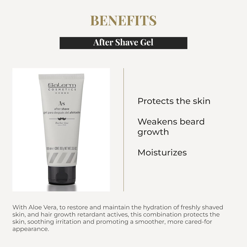 - MEN'S AFTERSHAVE: Salerm's post-shave gel is an aftershave designed specifically to care for the skin after shaving. Formulated to hydrate, protect, and slow beard growth while refreshing and soothing the skin.