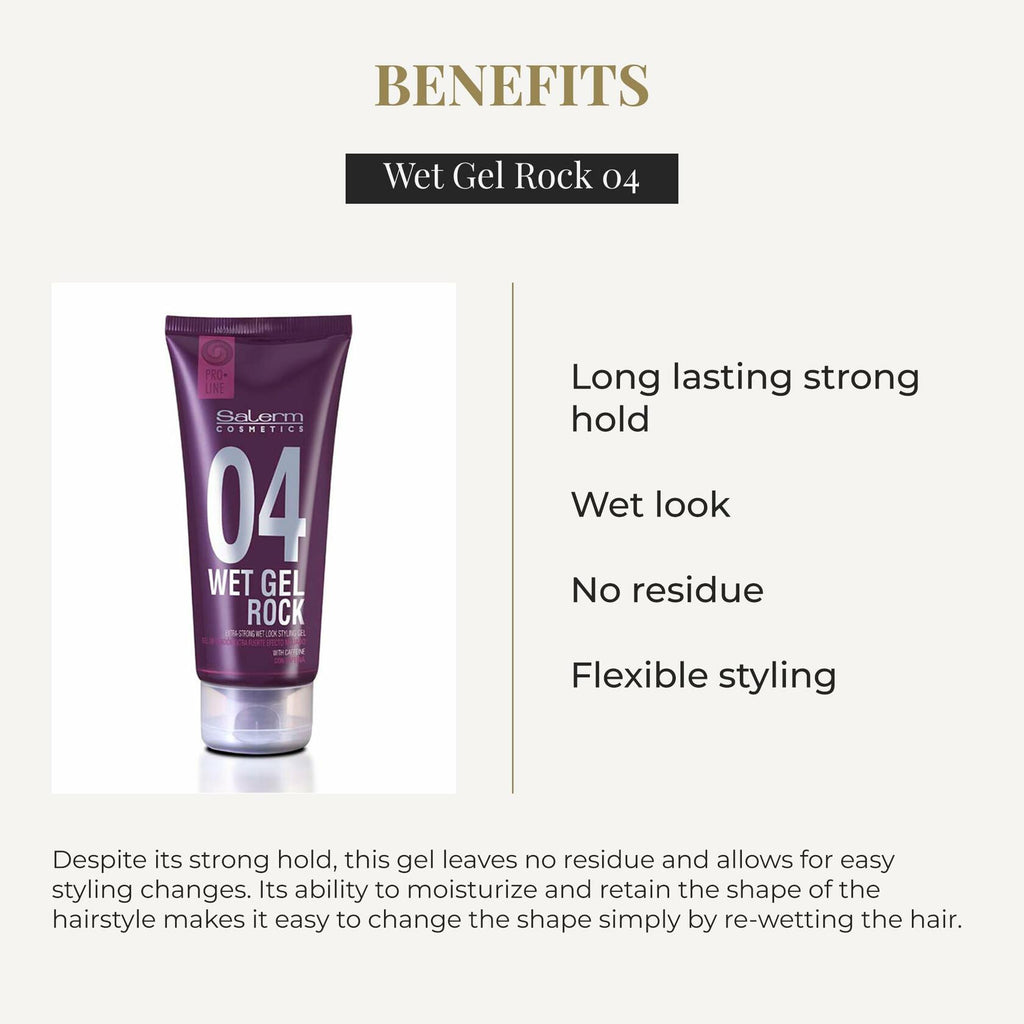 - HAIR STYLING GEL: The Wet Gel Rock Pro Line styling gel provides strong hold for achieving a long-lasting wet-look style. Its advanced formula with synergistic resins ensures flexible and resilient hairstyles throughout the day.