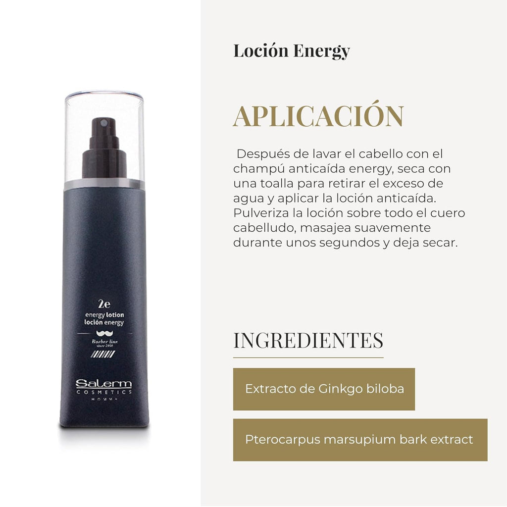 Salerm Homme Hair Loss Lotion 2 is a targeted capillary treatment designed to combat hair loss and revitalize the scalp. Infused with vitamin-rich ingredients, this daily-use spray strengthens hair follicles and helps normalize the hair growth cycle. Its refreshing formula activates blood flow, enhancing the absorption of active ingredients while reducing greasiness. Ideal for men experiencing early signs of hair thinning, this non-greasy lotion is compatible with finishing products and promotes visibly healthier hair with continued use.