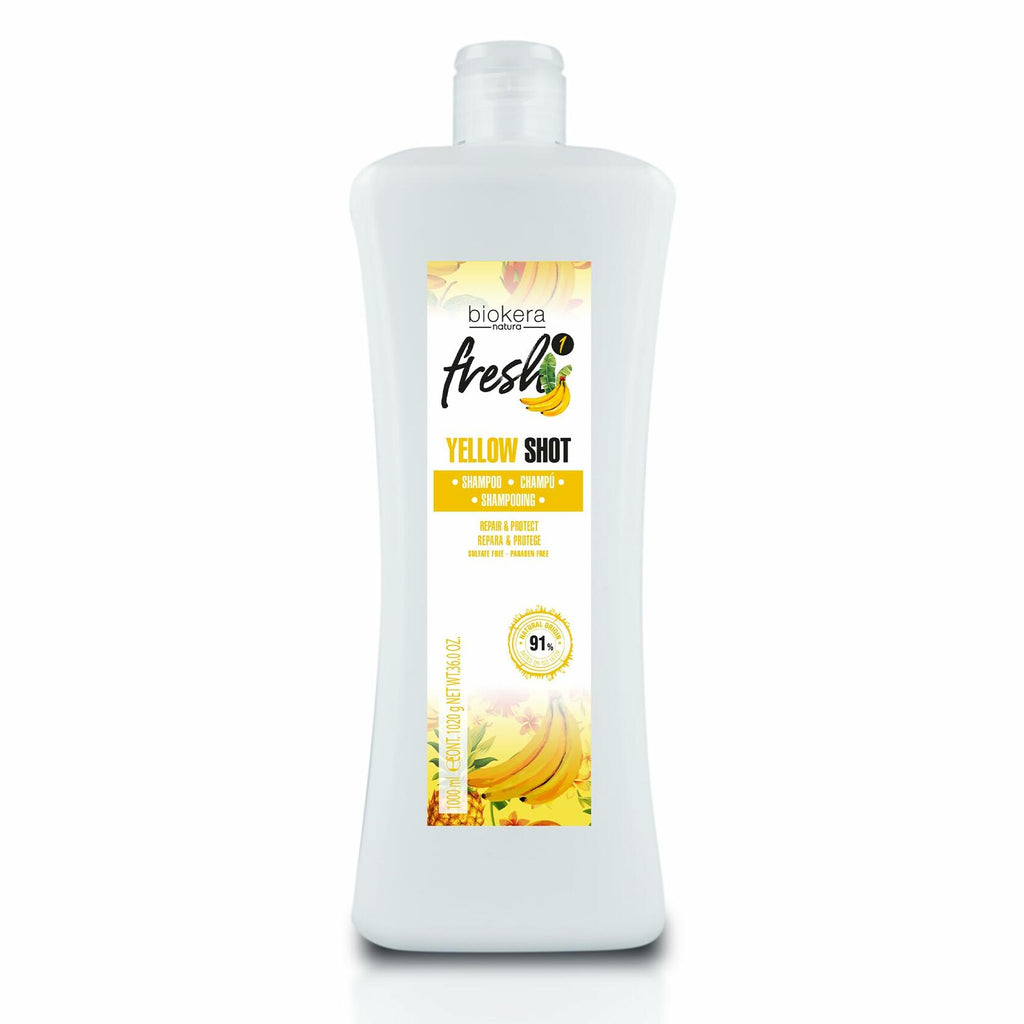 - REPAIR SHAMPOO: Biokera Naturas Yellow Shot is a repair shampoo enriched with a Yellow Cocktail that defends hair from external aggressions, repairing it and providing a nourished, shiny, and frizz-free mane.