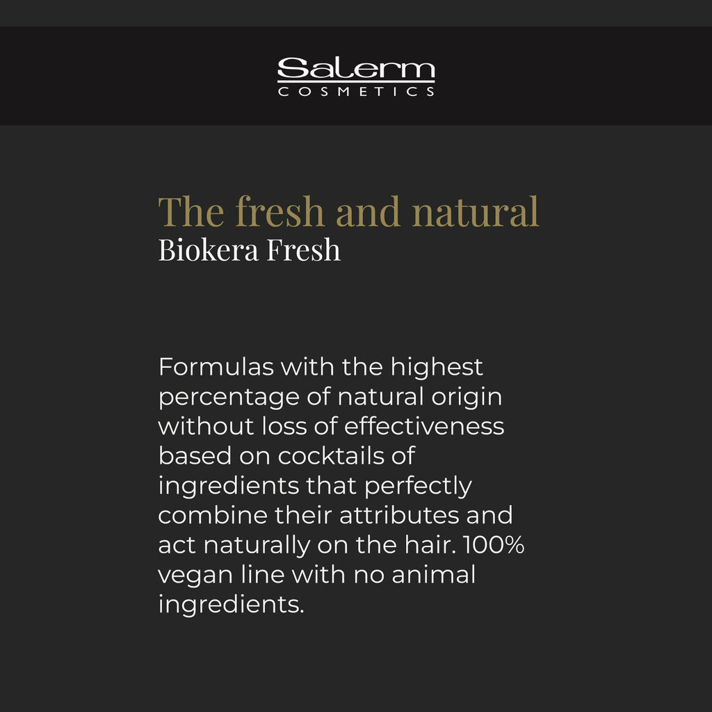 The Salerm Biokera Fresh Yellow Shot Shampoo is a unisex, 100% vegan shampoo formulated to repair and protect damaged or very damaged hair. It features a "Yellow Cocktail" of natural ingredients, including Canarian banana, mango butter, ginseng, almond oil, and ylang ylang flower, which work together to nourish, hydrate, and restore shine while reducing frizz. The shampoo is dermatologically tested and free from sulfates and parabens, making it suitable for all hair types seeking a natural and revitalizing hair care solution.