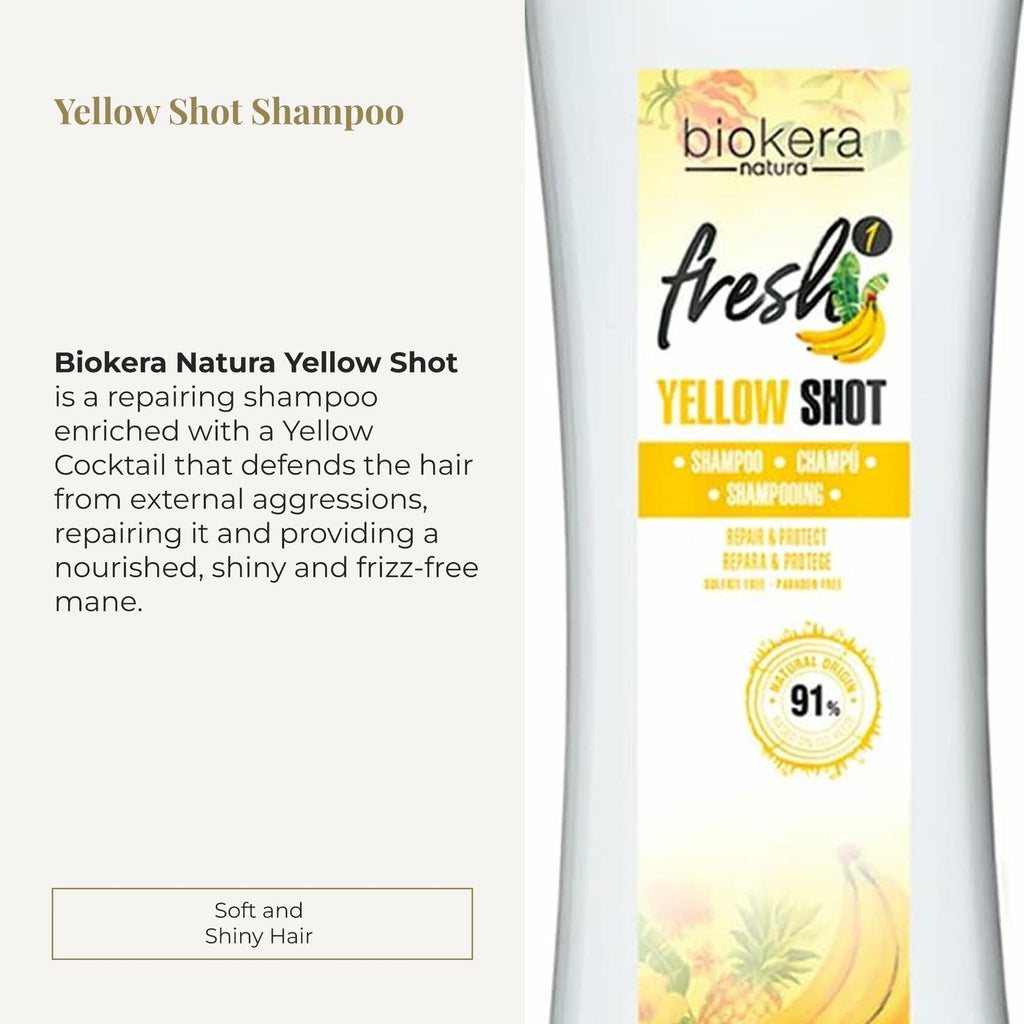 - REPAIR SHAMPOO: Biokera Natura’s Yellow Shot is a repair shampoo enriched with a Yellow Cocktail that defends hair from external aggressions, repairing it and providing a nourished, shiny, and frizz-free mane.
